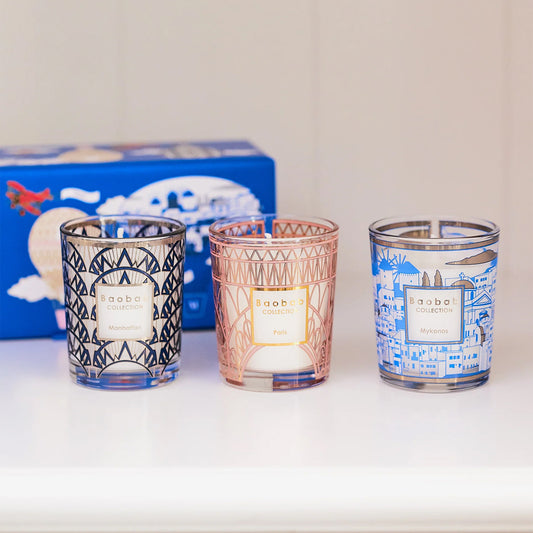 Baobab Trio Travel Candles: Paris, Mykonos, Manhattan