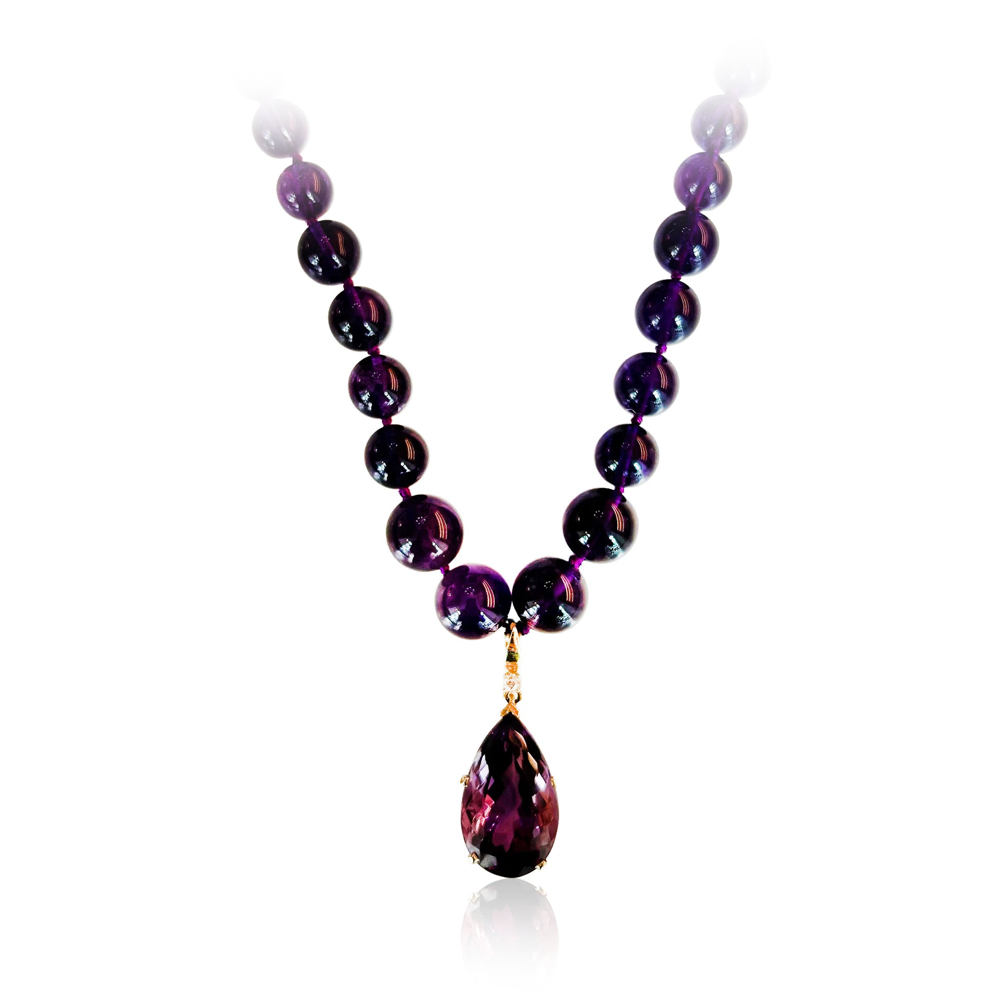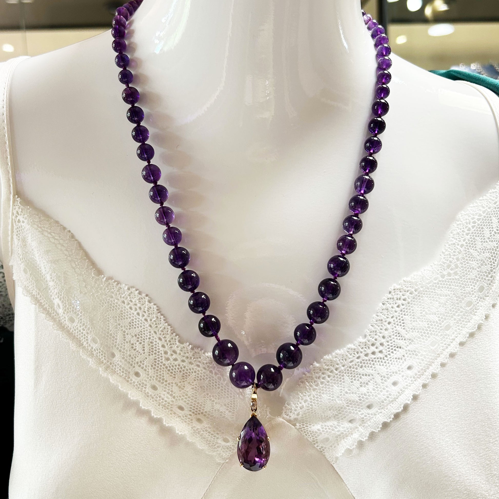 This exquisite Amethyst Beaded Necklace features carefully selected amethyst beads complemented by a striking amethyst pendant. The natural variations in the purple gemstones create a sophisticated gradient effect, while the metaphysical properties of amethyst are known to promote clarity and balance. Crafted with 14K gold findings for durability and hypoallergenic wear, this piece transitions effortlessly from casual to formal occasions. The amethyst pendant is removable and gives you endless options for styling!