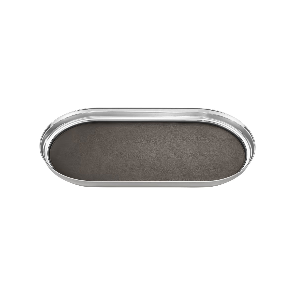 The stainless steel tray has been mirror-polished to give a gleaming surface.The lining is in black leather.
