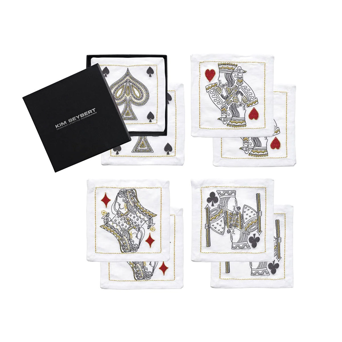 Raise the entertaining stakes at your next game night with the House of Cards Cocktail Napkins. Embroidered motifs inspired by playing cards decorate this set. And lucky for you, there are 8 napkins in one boxed set.