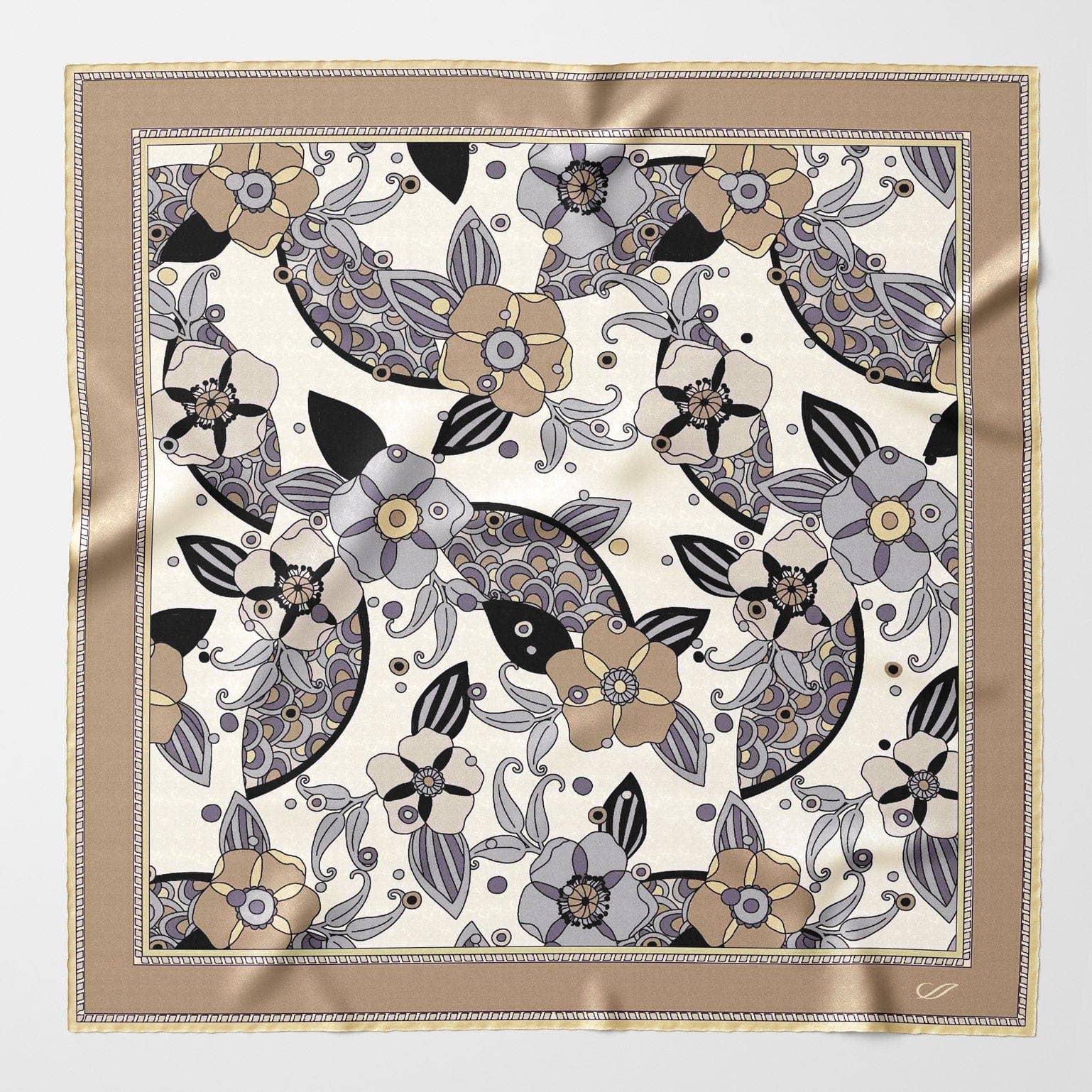 Set a new standard of style sophistication - it's the details that set you apart. Unlock the full potential of your wardrobe with the addition of an Elizabetta neckerchief that can effortlessly transform your look from timelessly classic to irresistibly suave, from charmingly rakish to daringly edgy. This abstract floral pattern in neutral shades of tan and grey with hand-rolled hems will give your look an elegant twist. This scarf is a testament to timeless craftsmanship, a blend of care, passion, and the beauty of handmade excellence.