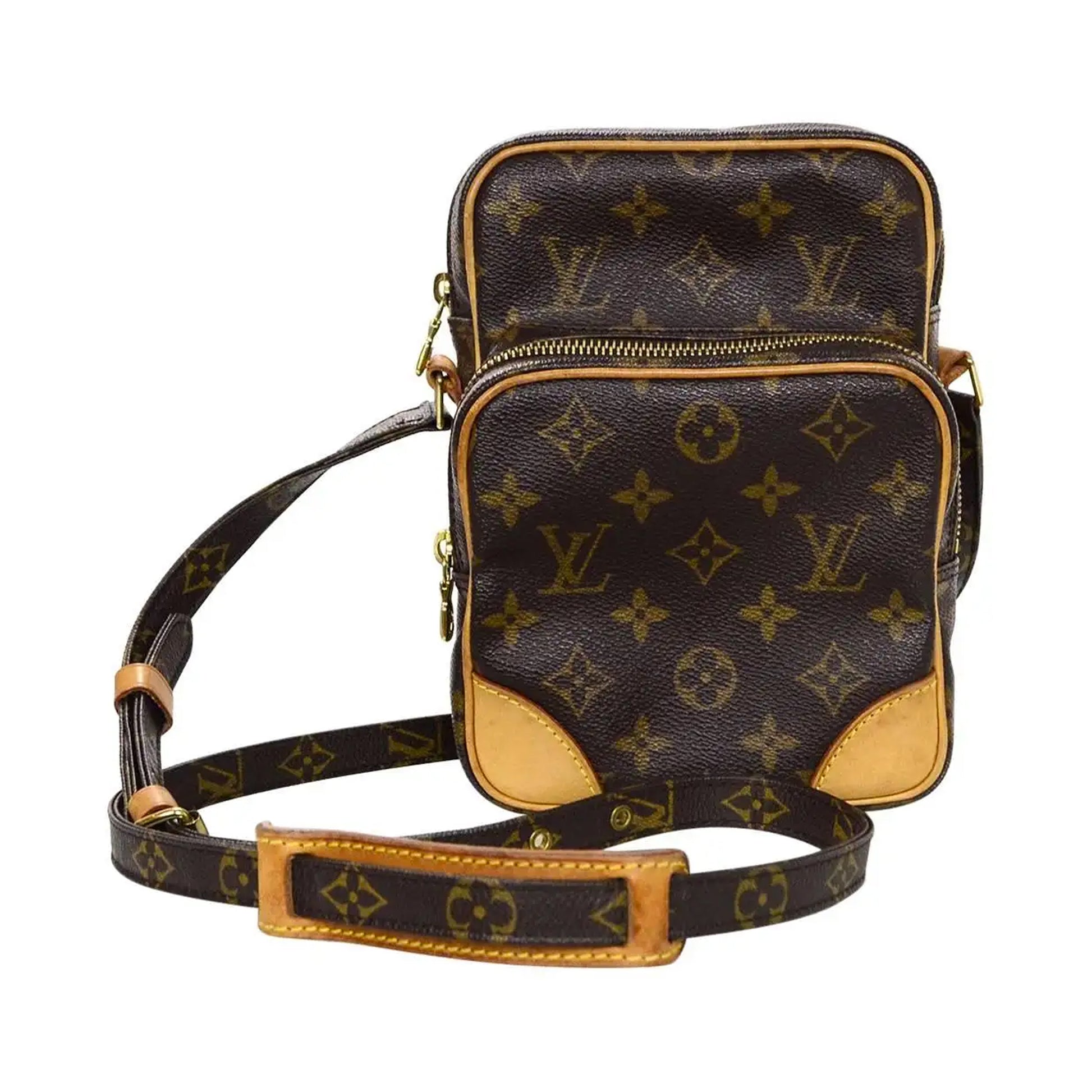 Pre-loved Louis Vuitton Amazone PM Crossbody Camera bag in LV Monogram Coated Canvas. Upgrade your closet with this sought-after luxury Amazone Monogram Bag. Crafted in coated canvas, this lovely monogram bag is super convenient for housing your essentials.