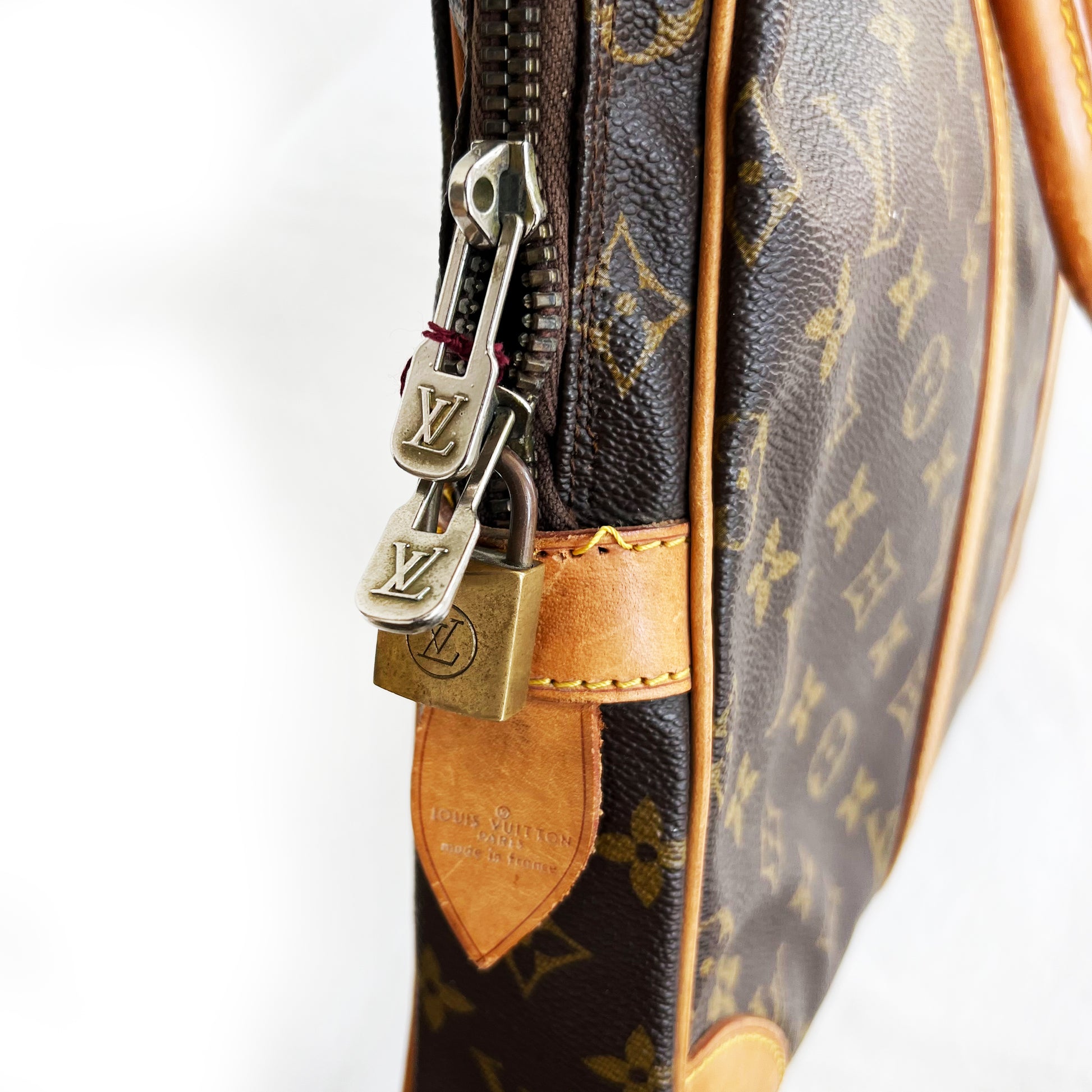 Pre-loved Louis Vuitton Porte Documents Voyage Briefcase in LV Monogram Coated Canvas. Made from iconic Monogram canvas, the Porte Documents Voyage is a vintage briefcase featuring: top handle straps, inner pen compartments, inner zipper pocket, and a top zipper closing.