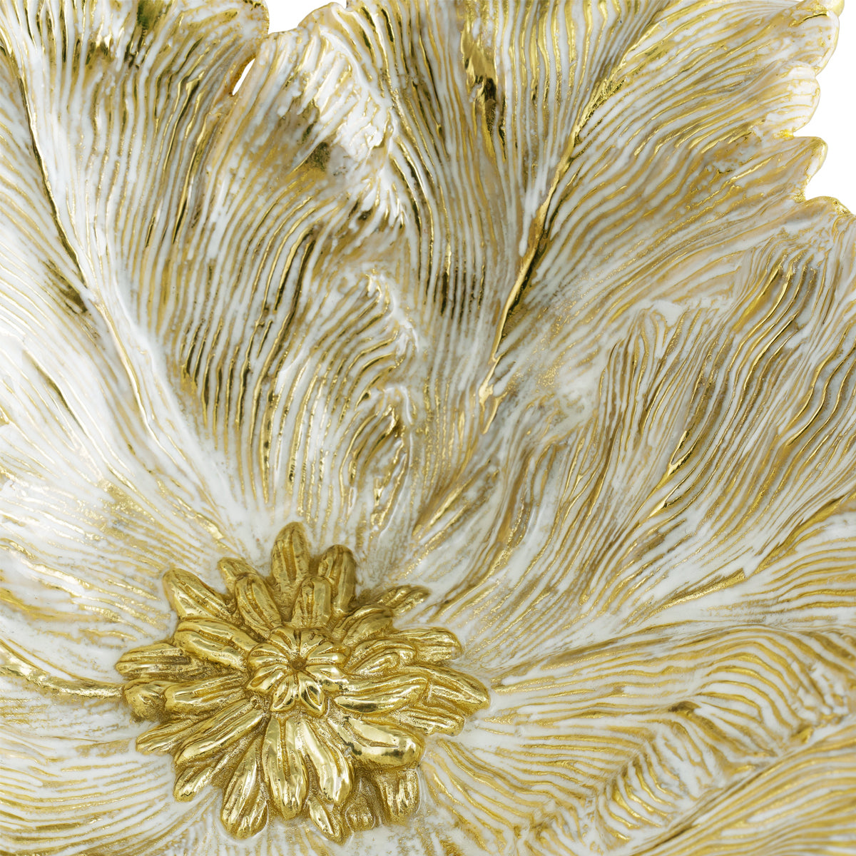 The Tulip Collection celebrates rebirth as the ground begins to thaw and new life flourishes. Inspired by the feathery petals of the Parrot Tulip, each petal ripples as if the flower is about to take flight. Symbolic of perfect love, these expressive blooms tell a story of life: of passion, grace, and new beginnings. The Tulip Collection features elaborate sculpts in a modern, lyrical way. The white enamel and gold finish reflects the effect of light and shadow that caress each flower as the world begins to wake.