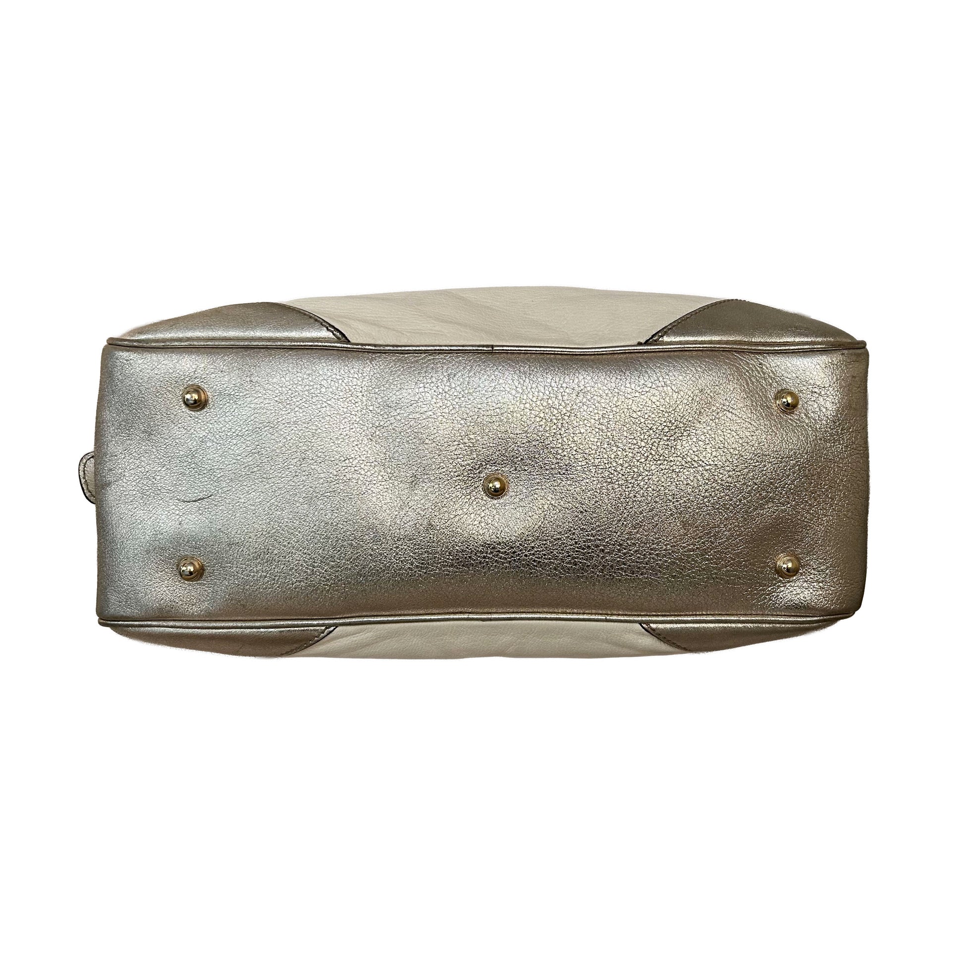 This vintage Gucci bag is a surely an eye-catcher! The Capri Bowlers Bag is made up of cream and gold metallic calfskin leather. The bag opens up to a metallic gold leather interior with one slip pocket and one zip pocket. The gold woven chain strap is perfect shoulder length. This is a fabulous bag for daily use or travel.