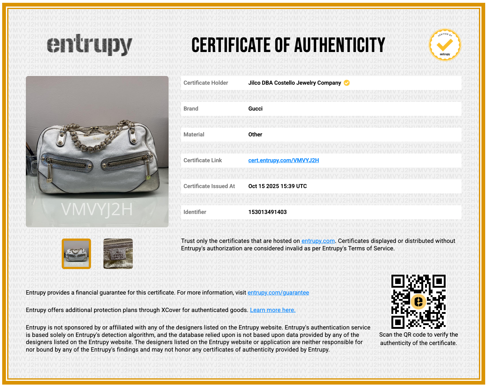 Entrupy authentication guarantee: cert.entrupy.com/VMVYJ2H
