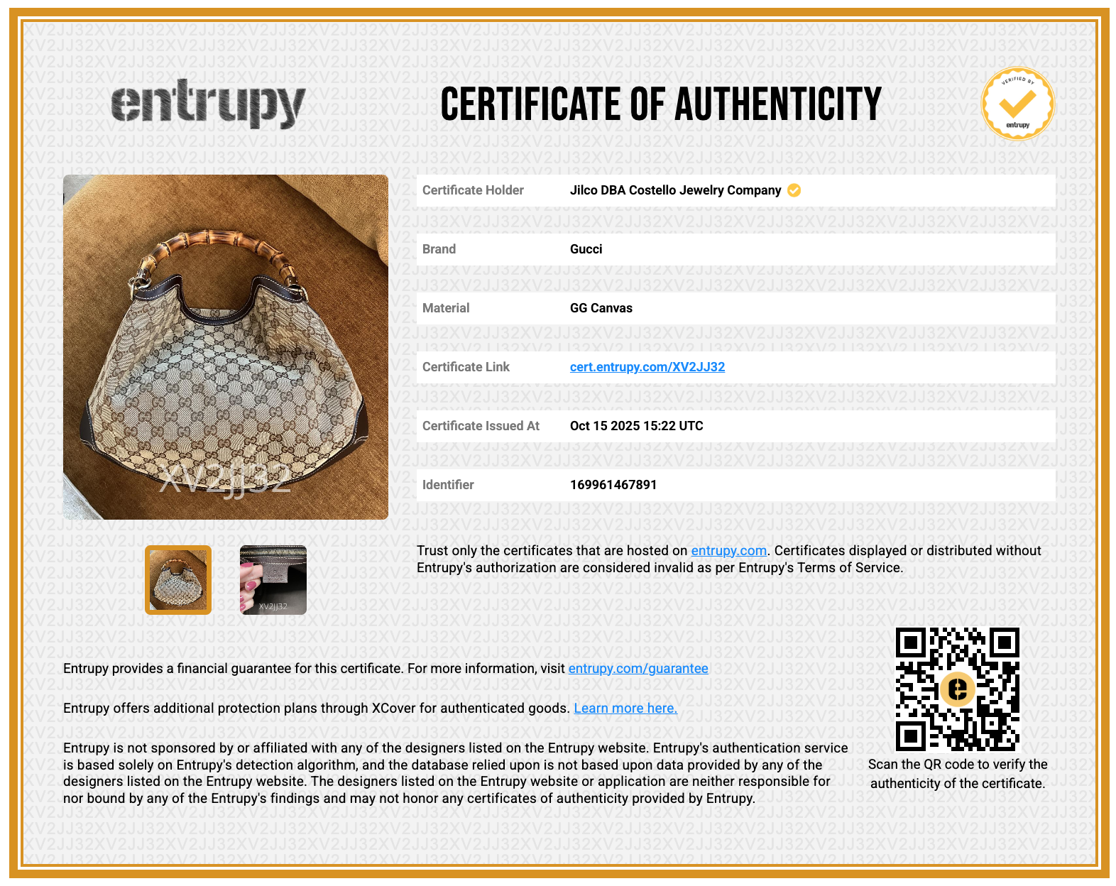Entrupy authentication guarantee: cert.entrupy.com/XV2JJ32