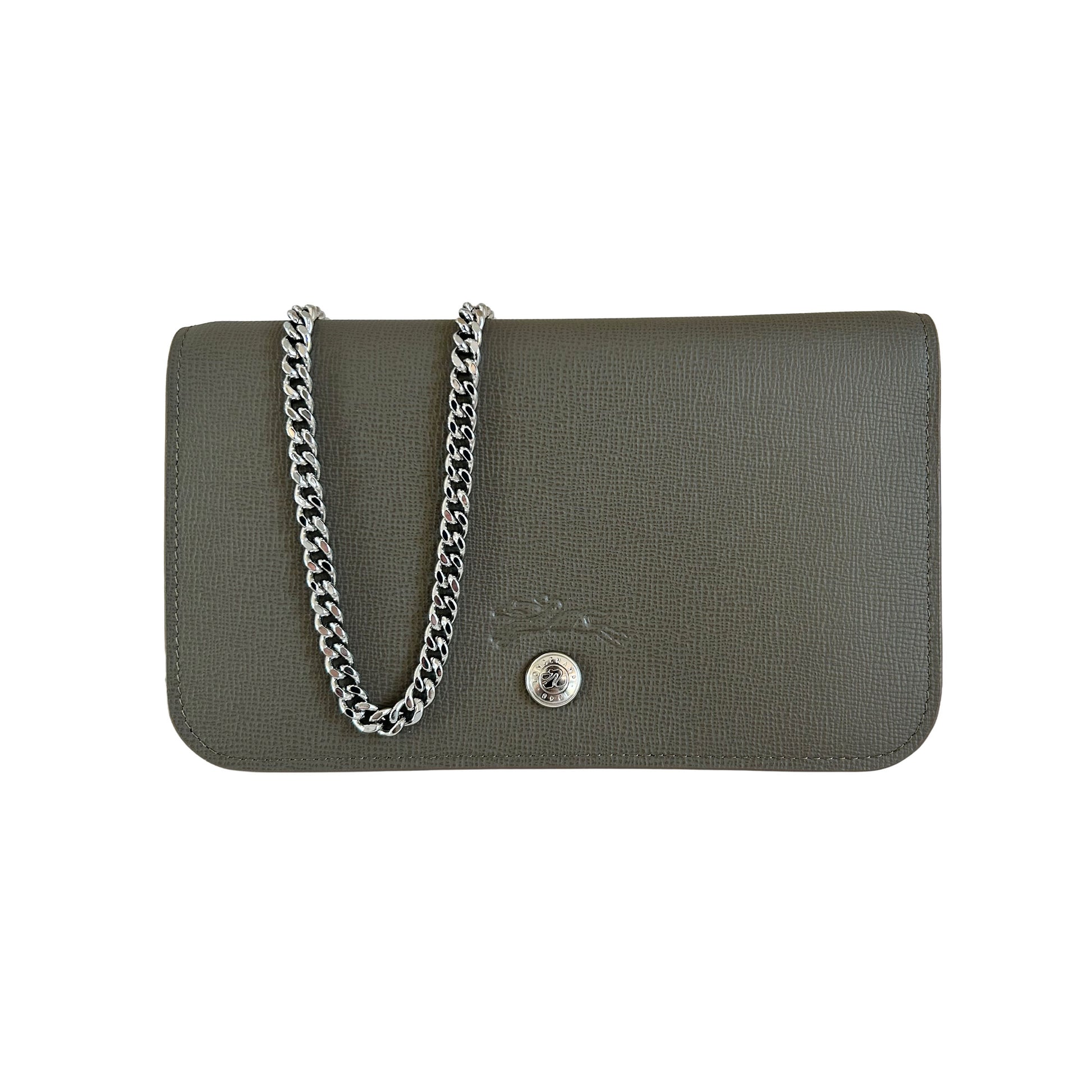 This pre-loved Le Pliage Neo Wallet on Chain is a timeless yet stylish bag that can be worn for numerous occasions. Crafted from a taupe colored grained cowhide leather, nylon interior & silver hardware, this bag can easily be worn from day to night. It features 6 card slots, an interior zip pocket and is roomy enough to hold your phone.