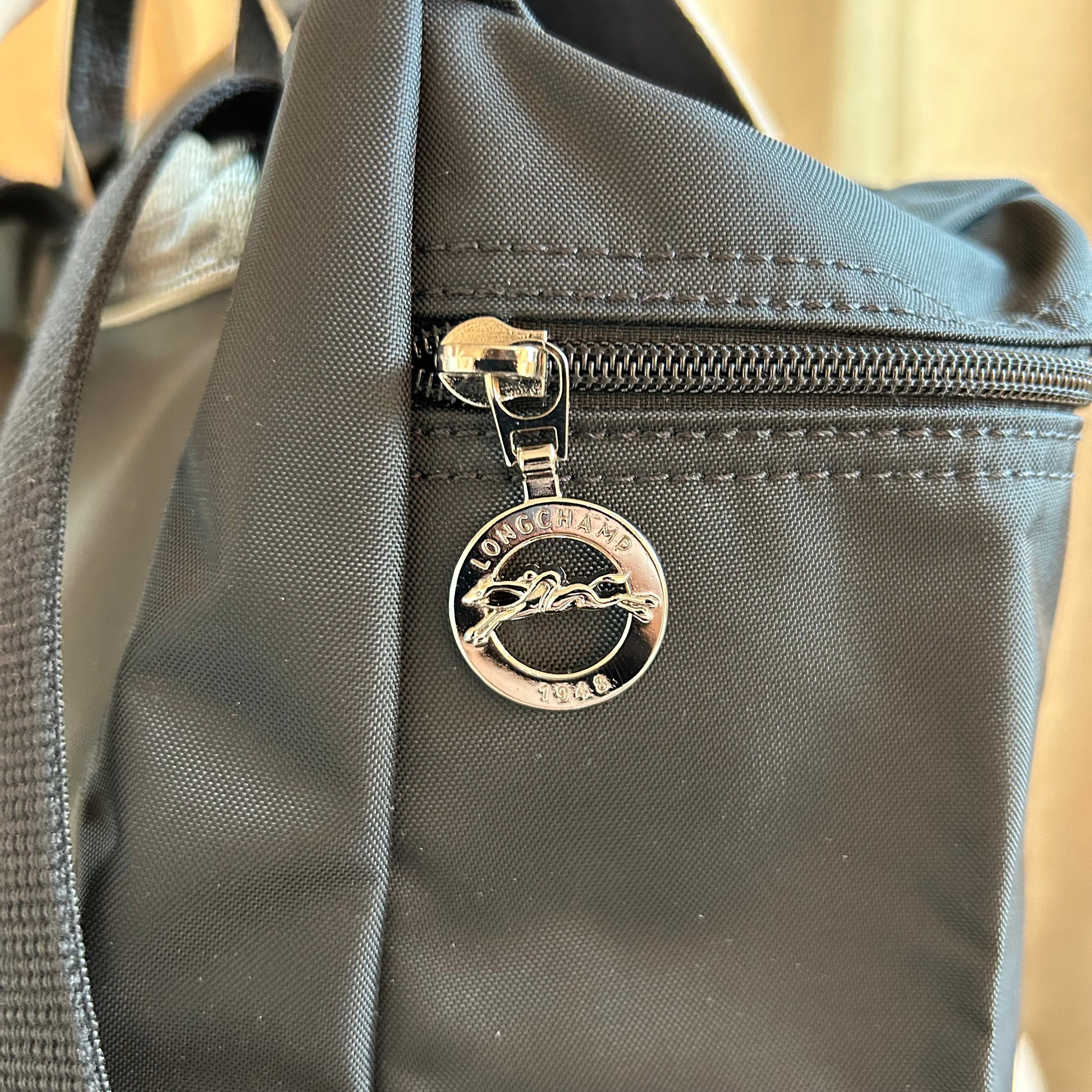 This pre-loved Le Pliage Backback by Longchamp is made of a lightweight nylon and can be folded flat to be completely packable. It features an iconic Longchamp horse icon embroidered on the front and a cowhide leather closure. A wonderful backpack for work, school or travel.